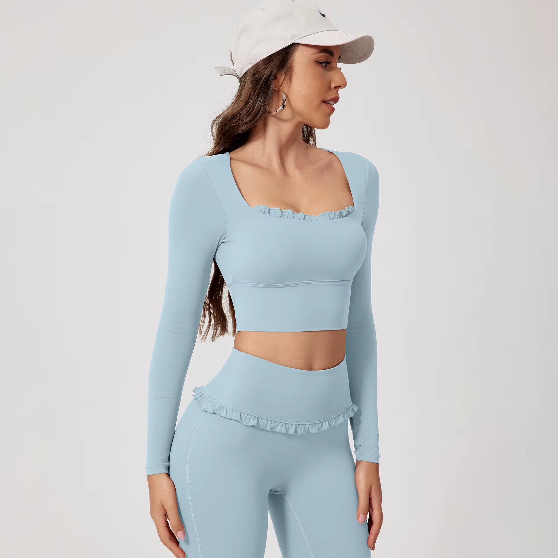 This activewear yoga set features flare leggings and a built-in bra top for ultimate comfort and support during your workout. Available in baby blue, baby pink, khaki brown, and black, you can choose your favorite color to enhance your style while staying active. Perfect for yoga, running, or any other fitness activity, this set will keep you feeling confident and stylish.